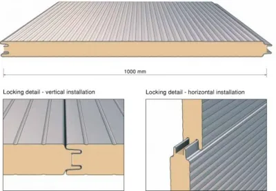 - طبقة داخلية: مادة عازلة (مثل البولي يوريثان، الصوف الصخري، أو البوليسترين)، وهي المسؤولة عن العزل الحراري والصوتي.