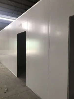 - تجهيز الهيكل المعدني: يتم إعداد الإطار المعدني أو الهياكل الحاملة التي ستُثبت عليها ألواح الساندوتش بنل.